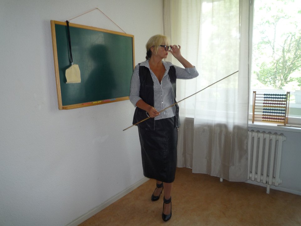 BDSM Rollenspiel klassische, strenge Lehrerin, Dominanz, Spanking, Rohrstockerziehung, Ohrfeigen, Bestrafung, Erziehung, Erotisches Sexuelles Rollenspiel, Nachhilfe Unterricht, Klassenzimmer, Schüler